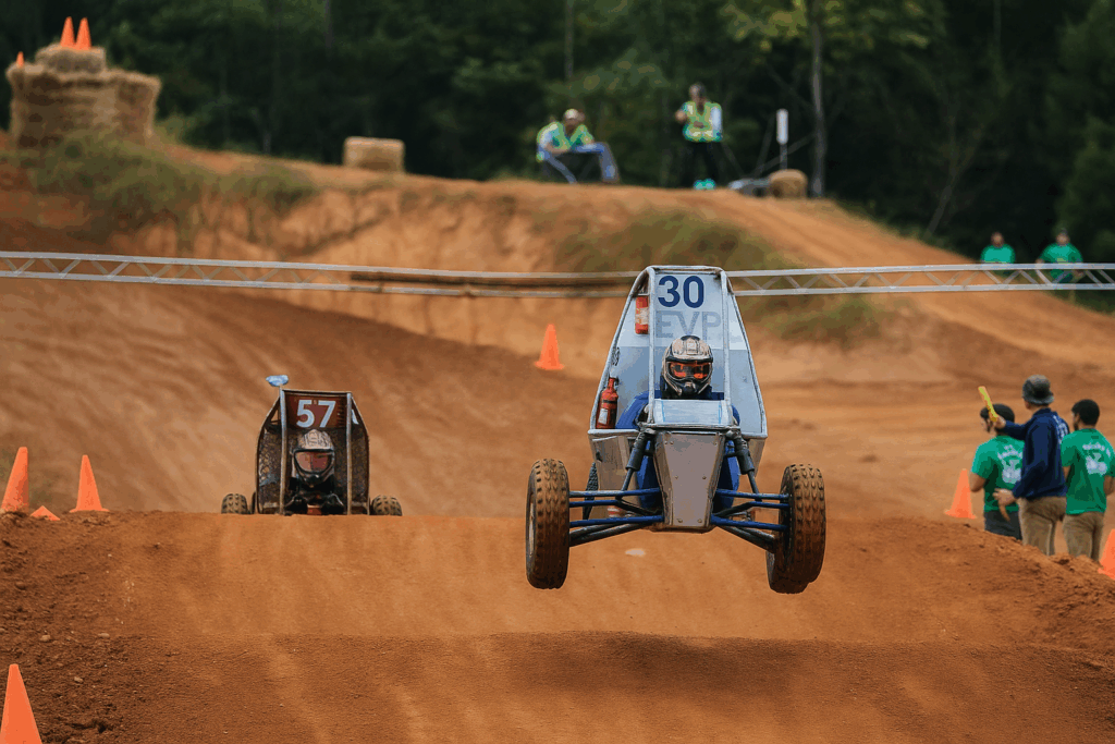 The SAE Baja consists of three regional competitions that simulate real-world engineering design projects and their related challenges. Students are tasked to design and build an off-road vehicle that will survive the severe punishment of rough terrain.